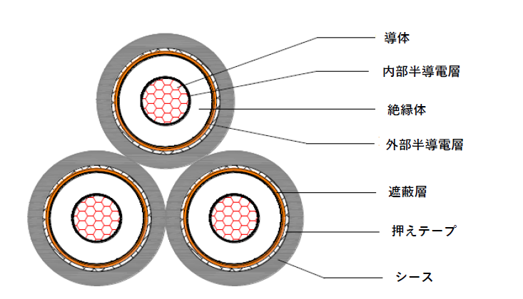 6600V CVT ケーブル 3×38sq  3×60sq   3×100sq